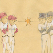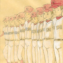 2007/11/21 Category : イラスト・デザイン さわやかに挨拶 コメントに関して、レスが大変遅くなってしまって申し訳ありませんでした!油断して、こまめにコメント欄をチェックしていなかったのが原因です。以後、気をつけます!これからも「みちくさ」を、よろしくおねがいします。N=nine ナイン試合開始前に、並んでお互いに挨拶!そのあと、さっと守備位置に付く(もしくはベンチに戻る)のですが、上手なチームはその動きが俊敏で、見ていて気持ちがいいです。さあやるぞ!という気迫が、感じられる一瞬です。