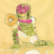 2007/09/03 Category : イラスト・デザイン 順調です C-Catcher キャッチャーバッターは惜しくも空振り!ボールはキャッチャーのミットに納まったのでした…なんて。Aから 一連の動きを意識して描いてみました。そういえば、ココにアップされている絵をクリックしても、拡大された画像がでてきません。原因は分かっているので、そのうち直します…すみません…ずぼらで…