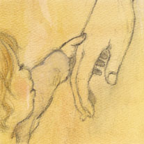 2006/12/12 Category : イラスト・デザイン ママの手 キンダー・ガーデン シリーズは続きます。H-hand おててデパートの中などでふらふらしてる子供が、ママと間違えて他人である自分の手を握ってきたことってありませんか?ちょっとドキッとしてしまいます。でもその子は、私がママじゃないと気づいて、もっとドキッとするのです。実は私も、お母さんと間違えて、違う人の手を掴んでしまうおっちょこちょいな子供でした。この人はママじゃない!と気づいたときの恐怖感(失礼ですけど…)と、ママを見つけたときの安堵感が、今でも忘れられません。あ!この絵は、本当の親子を描きました!「H」という雑誌で以前「ママライフ」の特集があり、そのときに女優のともさかりえさんと息子さんのお写真が載っていました。2人の自然体の姿が、現代的でおしゃれな親子像だと感じました。この作品は、ともさかさん親子をモデルにしています。