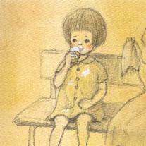 2006/12/26 Category : イラスト・デザイン 復活します ぜんぜん更新してなくてしみません!ちょっとばたばたしていました。それにしてもほったらかしにしすぎました…ごめんなさい!以後、気をつけます。I-icecream アイスクリームこれはある方の子供時代の写真を参考に描きました。なので、髪型などが少しレトロです。本当はこんなにだらだらアイスをたらしている写真じゃないんですが、ぱっと写真を見た瞬間に、アイスがたれているほうが「らしい」と感じたので、こうなりました。全く勝手な解釈ですけど。そういえば、私は子供時代にそうとうおっちょこちょいで、アイスを買ってもらったそばから、コーンの上に乗っている部分をそっくり落とすという失態を何度もしました。そのたびに、アイスが食べられなかった悲しさよりも、せっかく買ってくれた親(とか、おばあちゃん)に申し訳ない気持ちになり、なんとも悲しかったのを思い出します。でも、親は子供がそんな気持ちなのを知らないで、「何であんたはいつもそうドジなの!」といって、しかりつけたりするものですよね…。それで余計に悲しかった…。全国の親御さんたち、子供はささいなことで傷ついているのですよ!そして、二十歳過ぎてもこうして覚えていたりして…。ああ!怖い!!なんの話をしてるんでしょうね?(^^;