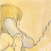 2006/12/06 Category : イラスト・デザイン 電話って不思議?! さくさくと『キンダー・ガーデン』の続きを載せたいと思います!E-earphone もしもし?earphoneは音楽を聴くときのイヤホンという意味のほかに、受話器という意味もあります。昔、某引越し社のCMで、小さな子供が電話に出てしまって大人がたじたじになる…というのがありましたよね。(ぞうさんはもーっとすきですってやつ)私はその女の子の気持ちが良く分かります。電話は私にとって、興味をそそられる存在でした。機械の向こうから人の声がするのが、不思議でたまらなかったのです。電話の呼び出し音がなると、率先して受話器をとりに行きました。当時はまだ黒電話だったので、ジリリリリ!というけたたましい音がしていたのを思い出します。最近ではセールスの電話が怖くて、昼間にかかってくる電話にはほとんど出ません。(笑)