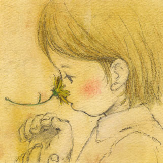 2006/12/08 Category : イラスト・デザイン 自分の評価/他人の評価 続きです!F-flower おはな花の香りを吸い込みすぎて、鼻にお花が吸い付いている…という状況だったのですが、茎の角度が悪いせいか、全然そうは見えないんですよね…。ホントは書き直そうと思ったのですが、女の子の方は気に入っていたので、これを書き直してしまうと、二度と同じようには描けない…と思い思い切ってそのままにしてみました。結果としてこの絵は、自分では自信がなかったのに、シリーズの中ではかなり講評です。自分がいいと思うものと、人がいいと思うものとは、必ずといっていいほど開きがあります…。この開きを埋められる人が、プロなのかな…と最近思います。ほんとに難しいことです。